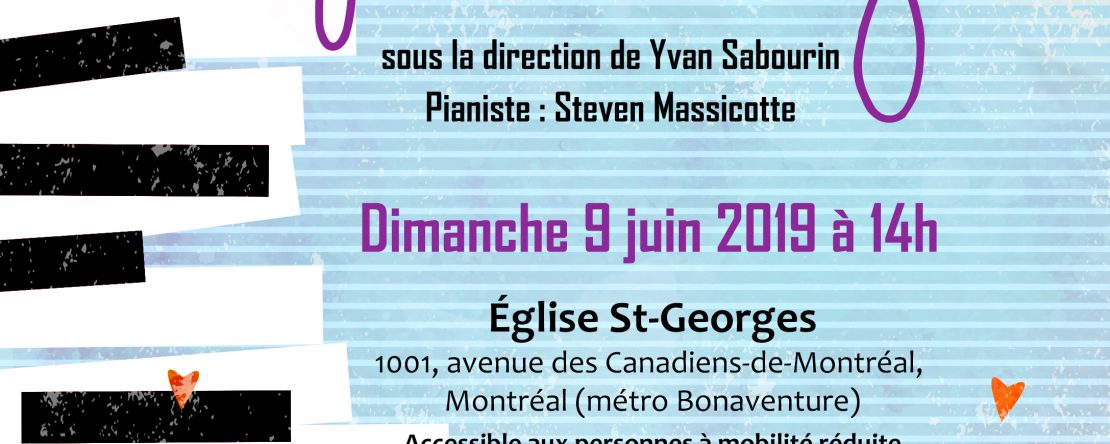 Concert du dimanche 9 juin 2019 à 14h L’ensemble vocal Stakato, sous la direction de Yvan Sabourin et accompagné au piano par Steven Massicotte, vous invite à son concert du printemps.