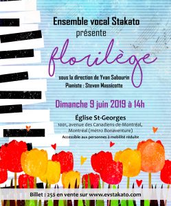 Les billets au prix de 25$ sont disponibles dès maintenant en ligne ou auprès des choristes ; ils seront également disponibles à la porte le 9 juin. Pour tout renseignement auprès de Stakato: [email protected].